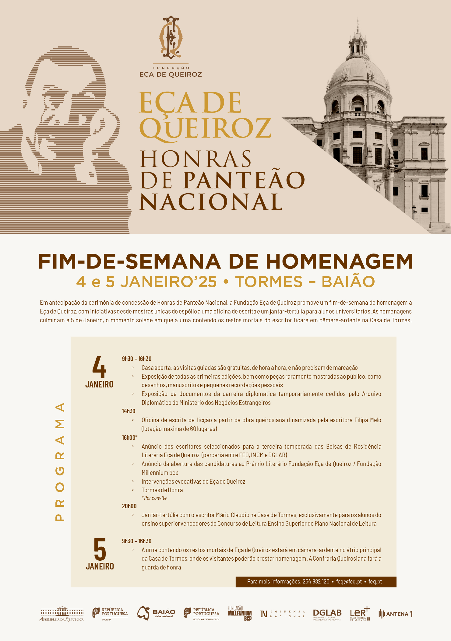 4 e 5 de Janeiro, em Baião, Tormes celebra Eça de Queiroz num fim-de-semana de homenagem que antecede a concessão de honras de Panteão Nacional.